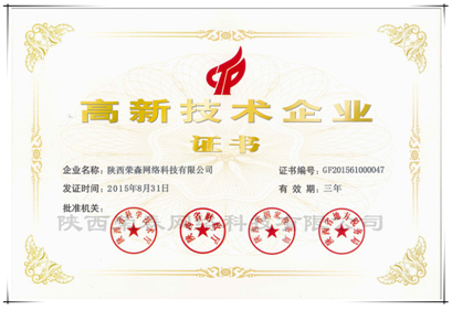 7月,我司(陕西荣森网络科技有限公司)通过国家科技部的认证,通过了高新技术企业认证,获得证书。