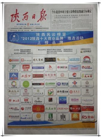 12月陕西日报传媒集团联合陕西省商业联合会,举办了“陕西十大商业品牌”推选活动,经过层层筛选我公司已顺利成功入选,并于次年2月20日将候选名单刊登于陕西日报消费周刊上。
